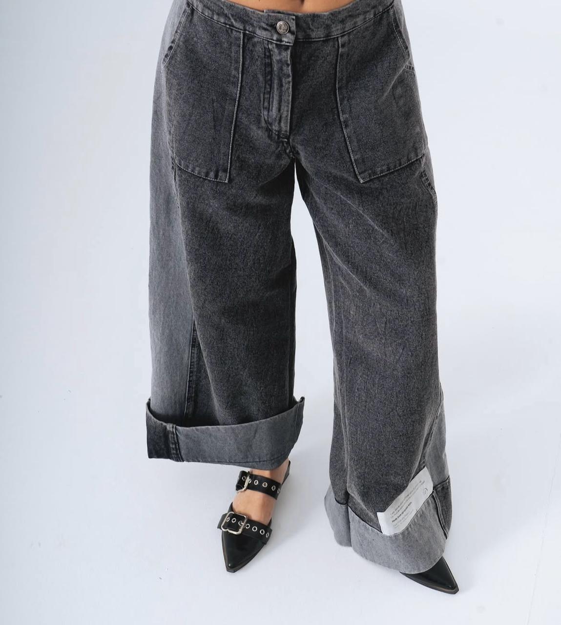 Straight‑leg trousers tailored from post‑consumer polyester blend.